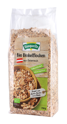 Bioquelle Bio Dinkelflocken, Bio Haferflocken, Bio 5-Kornflocken & Bio Dinkel
